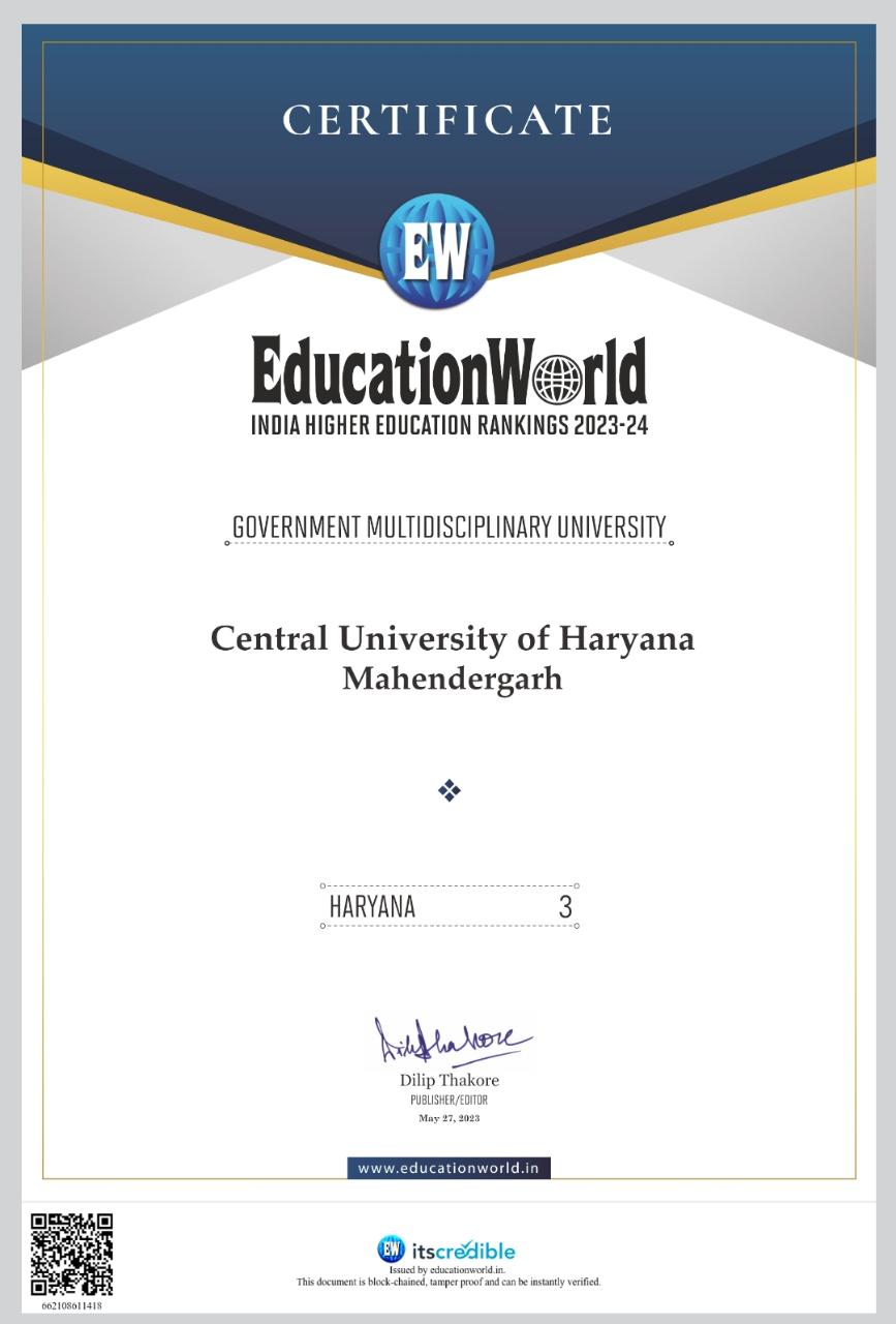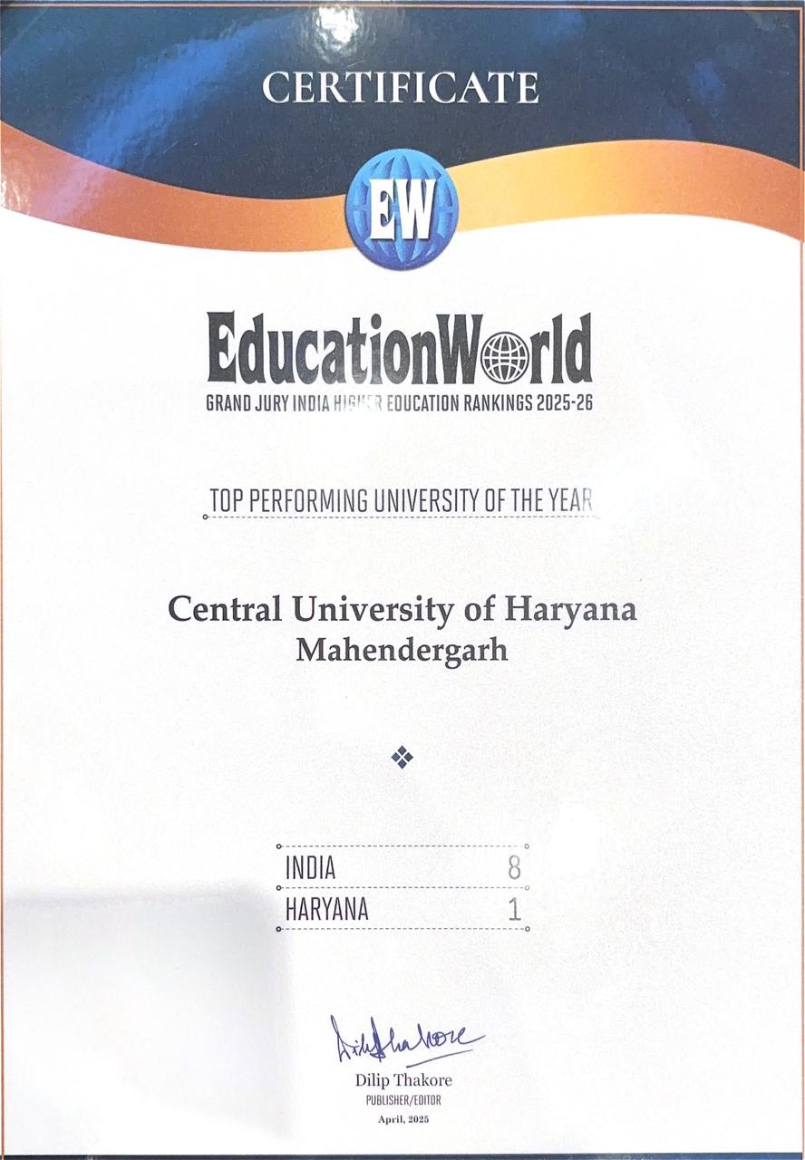 | 9. | Top Performing University of India by Education World | 2025 | View Certificate |